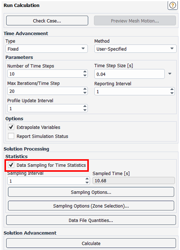 若计算一段时间后再开启数据采样,其之前的数据无法进行处理。例如先计算 3 步后,开启数据采样后继续计算 5 步,则实际可供处理的数据样本数仅为 5 个,开启采样之前的 3 步数据结果无法进行统计处理。