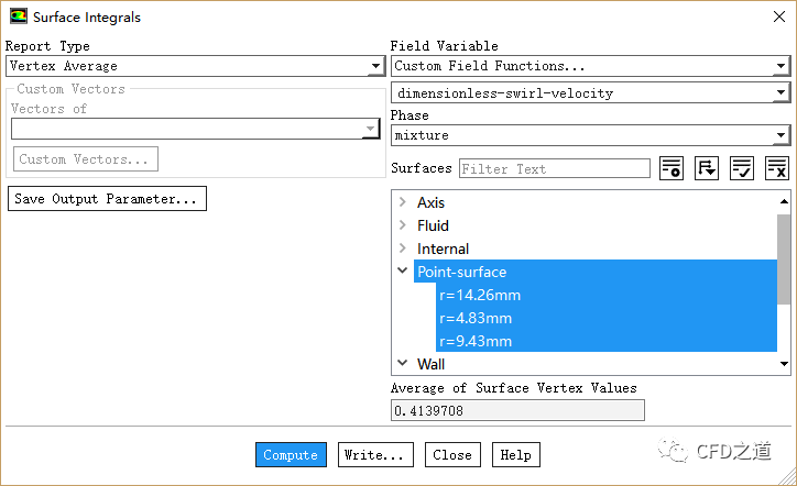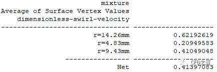 双击模型树节点Report > Surface Integrals,如下图所示获取前面创建的三个点的无量纲旋转速度值