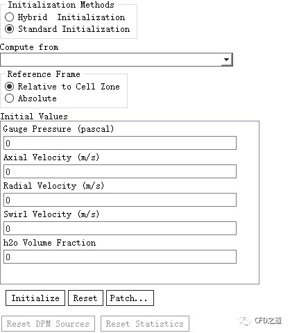 鼠标双击模型树节点Initialization,右侧面板采用下图所示设置