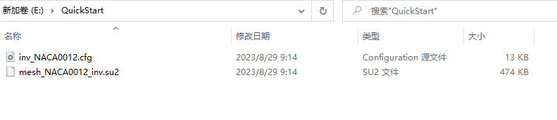可以导航到 QuickStart 目录,或者创建一个运行教程的目录。如果创建新目录,请将配置文件 (inv_NACA0012.cfg) 和网格文件 (mesh_NACA0012_inv.su2) 复制到该目录。