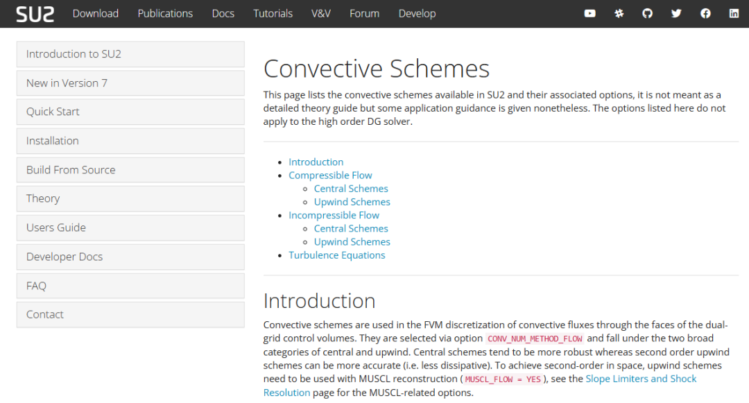 SU2拥有比较完善的文档系统,网站上可以直接查看理论文档、用户文档、开发文档、案例文档、V&V等。
