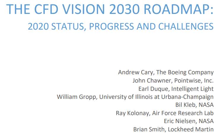 AIAA的这篇文章《THE CFD VISION 2030 ROADMAP: 2020 STATUS, PROGRESS AND CHALLENGES》是针对NASA2014年发布的《CFD Vision 2030 Study: A Path to Revolutionary Computational Aerosciences》进行的中期检查。