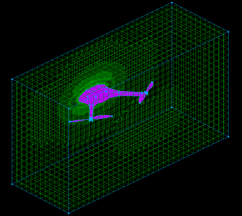 本案例利用Pointwise中的自动面网格和自动体网格功能,在四旋翼飞行器周围建立非结构面网格和体网格。