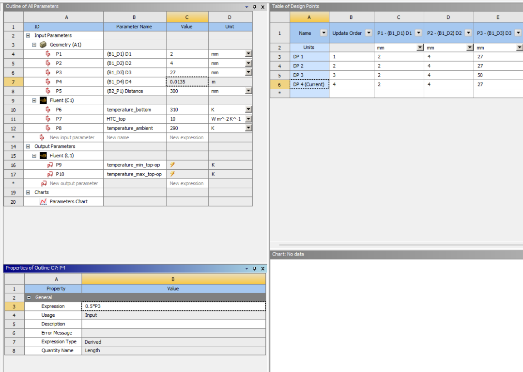 Discovery关闭时,可在Workbench参数集中将参数间基于表达式的关联,使部分参数变成导出参数,根据函数自动计算取值