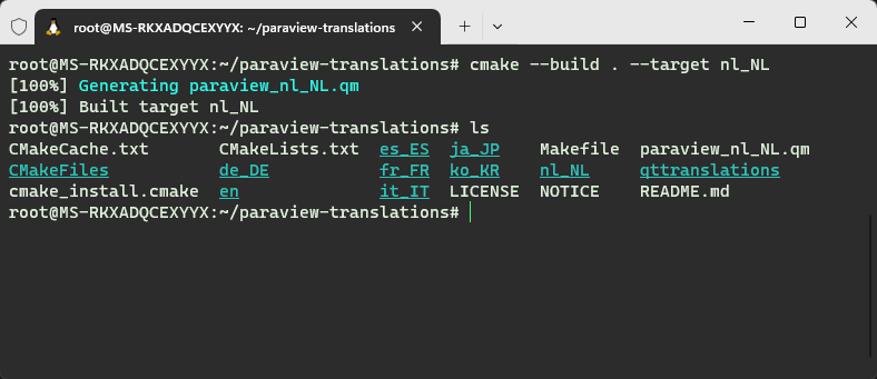 注:其实直接运行此命令也可以。nl_NL的名称不能随便改,必须与CMakeLists.txt中的文件夹名字保持一致,否则无法构建。