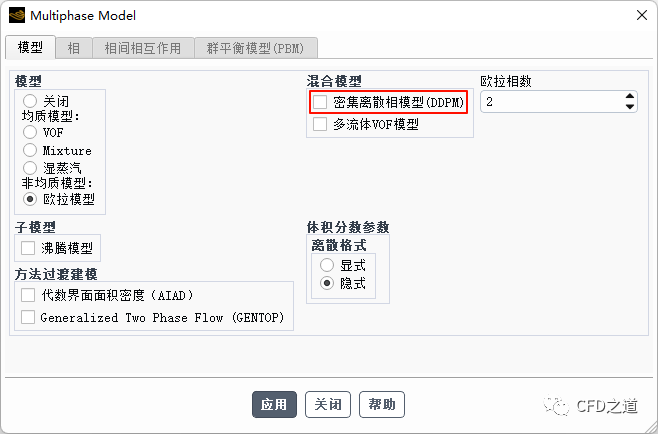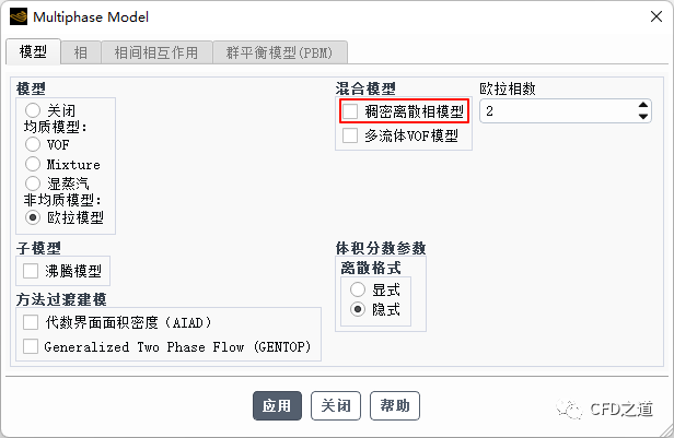 修改其译文为稠密离散相模型,如下图所示。注意需要点击工具栏上的确认按钮,否则修改的结果不会被保存。