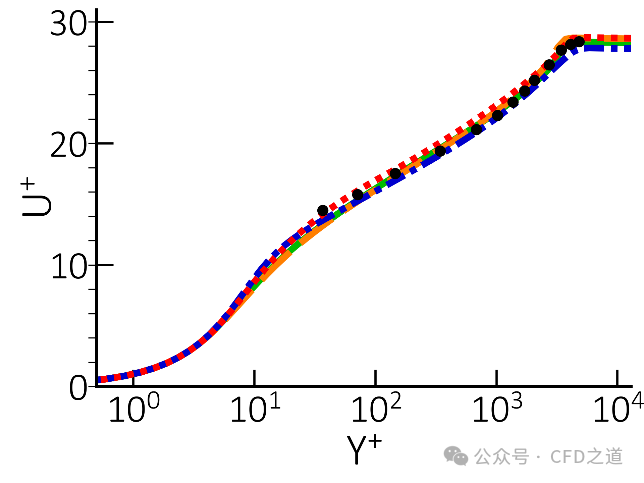 对于简单的壁面有界流动,EARSM模型以及RSM模型的非线性效应对主流流动没有影响。图7显示了包含和不包含EARSM/RSM选项的GEKO模型的壁面摩擦系数和壁面速度分布的预测。