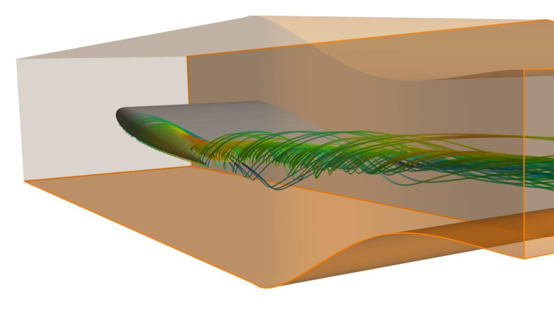 当前的模拟采用了以下边界条件:入口截面位置指定了一个高于大气压的总压 = 1760 Pa。入口的湍流特性根据湍流强度 = 0.15%和湍流粘度比等于TVR = 5计算得到。出口边界指定质量流率 = 67.25 [kg/s]。这使得入口平均速度= 51.81 [m/s],其与实验值相匹配。不考虑风洞壁面上的边界层,在风洞壁面上指定了对称边界条件用于模拟滑移壁面,并在NACA-0012机翼上指定无滑移壁面条件。