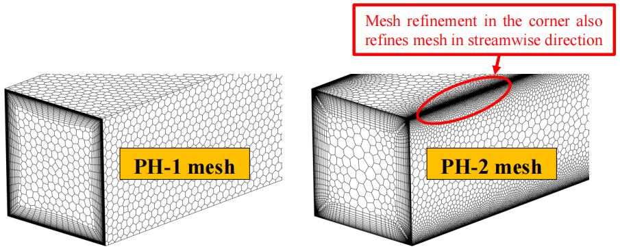 当激活转角流校正(Corner Flow Correction)或 EARSM 以计算转角处的二次流时,转角处的网格分辨率至关重要,尤其是非结构网格(四面体、多面体或笛卡尔网格)。