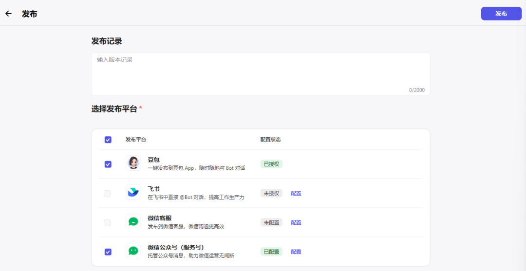 前面提到字节开放了国内版扣子,支持发布机器人到微信公众号。