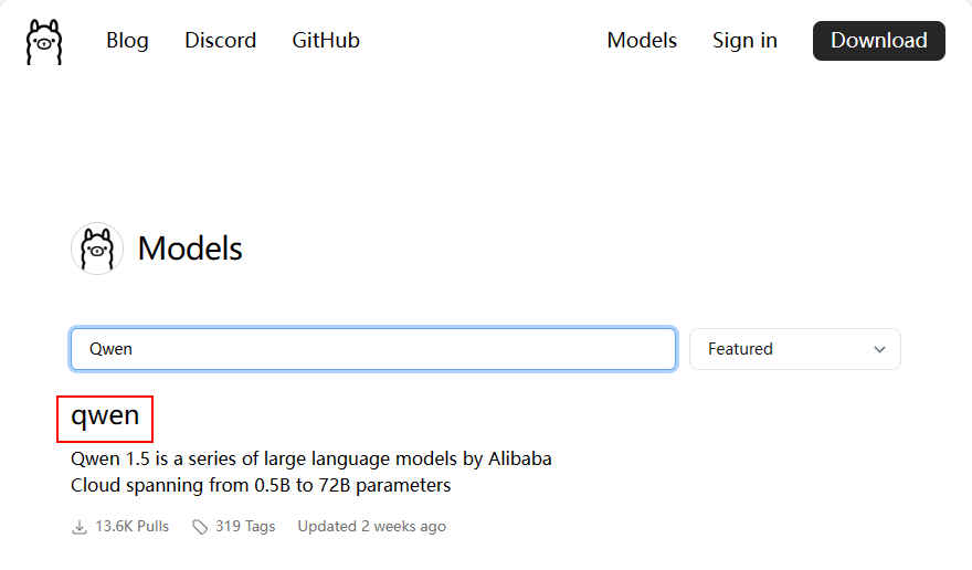 在打开的页面中可以搜索想要使用的模型,如要使用的Qwen