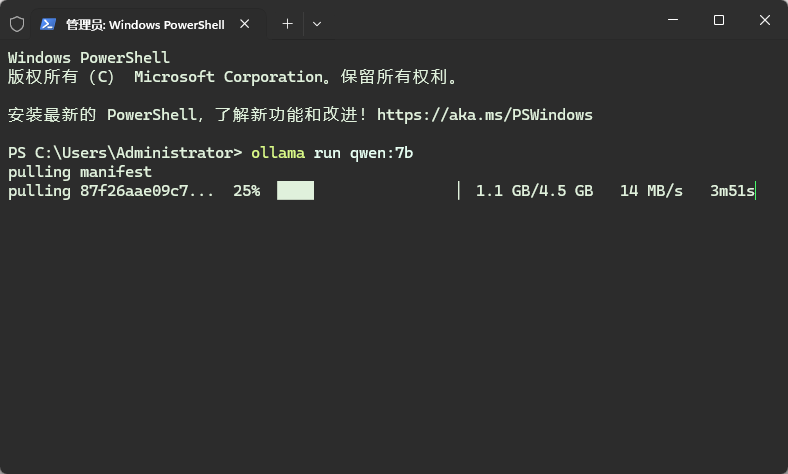 利用 Ollma 部署模型非常简单。下面以 Qwen-7B 为例描述使用过程。