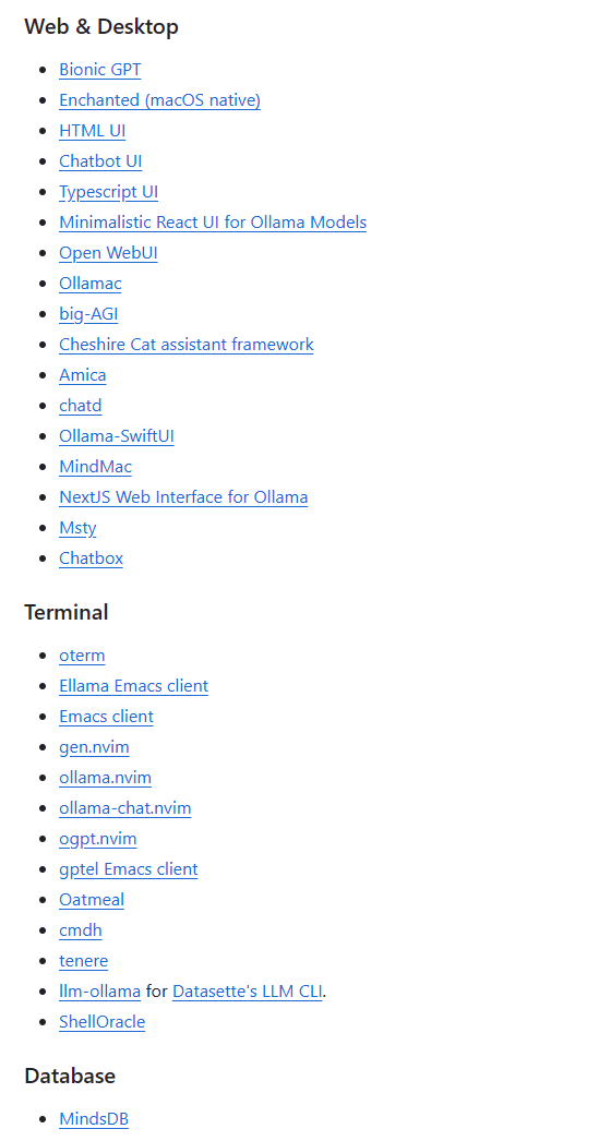Ollama支持从外部进行调用,其github官网提供了外部可以调用的一些UI和工具。