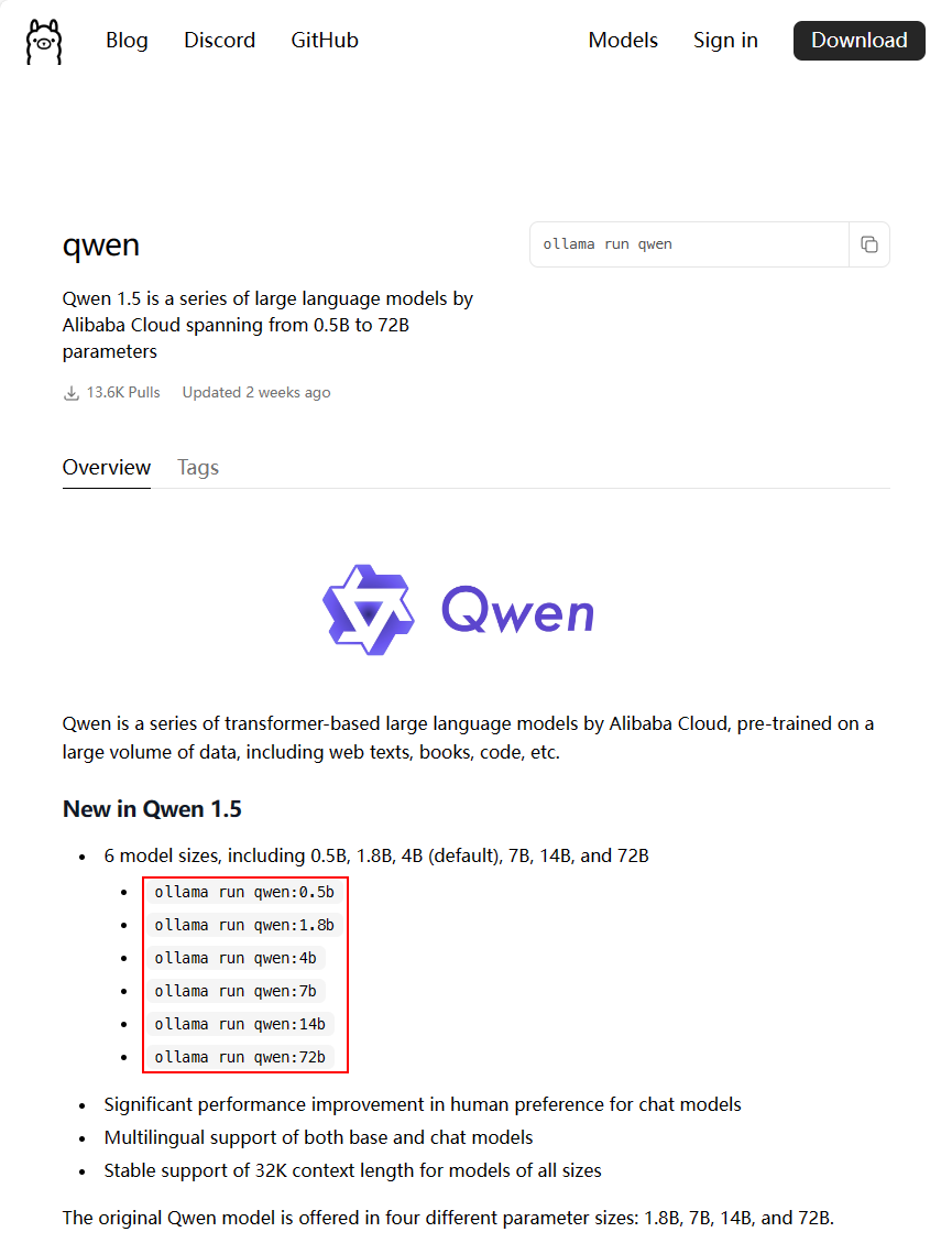 Ollama支持谷歌前两天开源的大模型Gemma,也支持一些公认的目前表现较好的开源大模型,如llama2、mistral、mixtral等,最主要的是能支持阿里前阵子开源的Qwen,包括0.5b到72b。这个目前应该是中文开源的最好的能在台式机上运行的大模型了。其实智谱的GLM3-6B也不错,不过从模型参数上看比不上Qwen-7B。