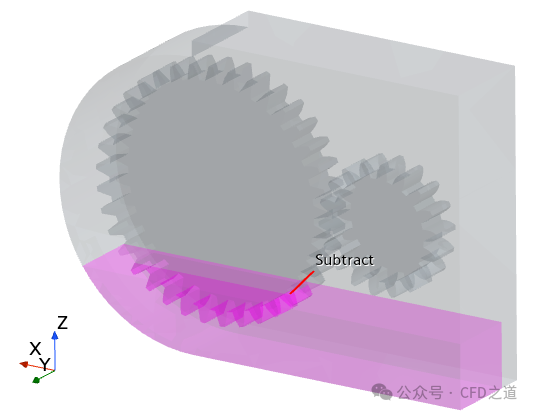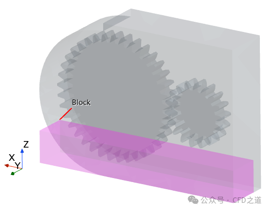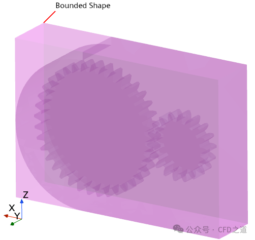 需要将导入的几何体部件分配给一个表面区域,在此区域内创建一个单一边界,表示齿轮箱外壳、齿轮和小齿轮的壁面。