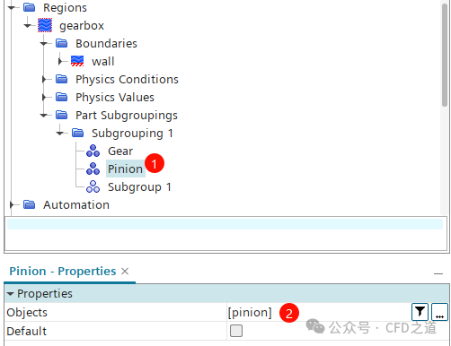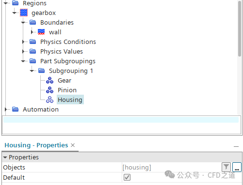 将 Region 节点重命名为 gearbox,并将 Boundary 节点重命名为 wall。 -
