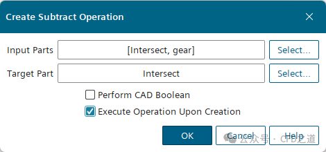 在 Create Intersect Operation 对话框中,激活 Execute Operation Upon Creation,然后点击 OK。