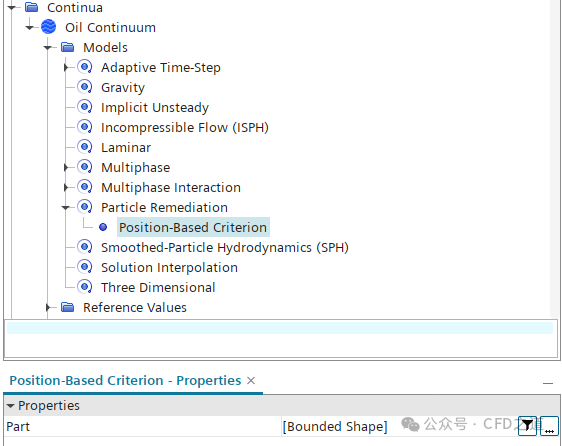 选择 Particle Remediation > Position-Based Criterion 节点并将 Part 设置为 Bounded Shape。