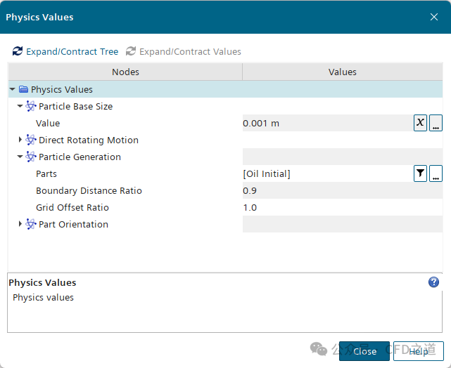 通常在使用SPH方法模拟流体流动时,需要以几何体部件的形式指定流体的初始形状和位置。这个几何体部件必须形成一个封闭表面。因此需要创建一个体积形状,在初始化过程中,该形状内部会生成直径为0.001米的油颗粒。颗粒的大小代表了流体的离散化程度。