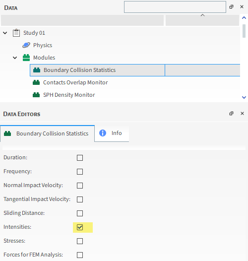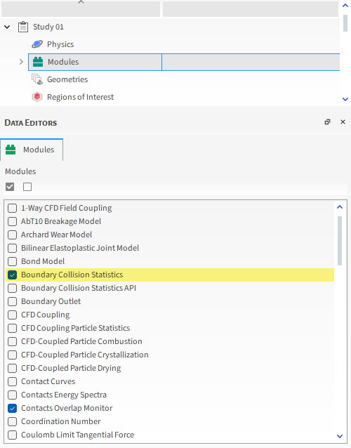 选择模型树节点 Modules,激活选项Boundary Collision Statistics