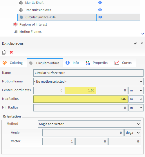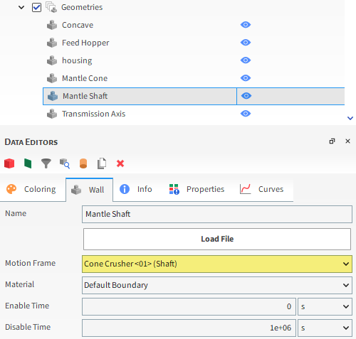 选中模型树节点 Geometries > Mantle Shaft,指定其Motion Frame为 Cone Crusher<01>(Shaft)