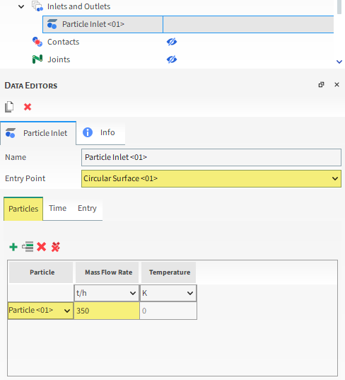 选中新节点,如下图所示指定入射颗粒的质量流量