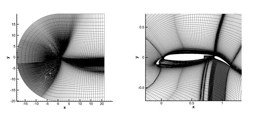 30P30N结构网格如图4-2所示,计算域为x方向20倍弦长、y方向20倍弦长。网格单元总数为133568,壁面第一层网格约为1.0E-05m。
