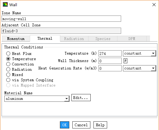 切换至Thermal标签页,设置Temperature为274 k