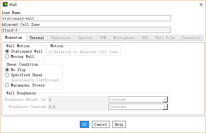 双击模型树节点Boudnary Conditions > stationary-wall,保持默认参数设置