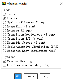 鼠标双击模型树节点Models > Viscous,弹出对话框中选择选项Viscous Heating激活粘性热选项