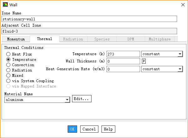 切换至Thermal标签页,设置Temperature为273