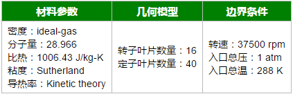 采用单个转子叶片与单个定子叶片进行计算,利用旋转参考系模型模拟转子的转动,计算参数如表所示。