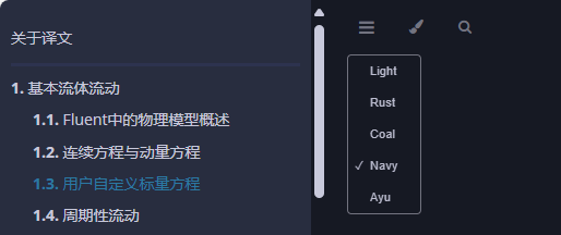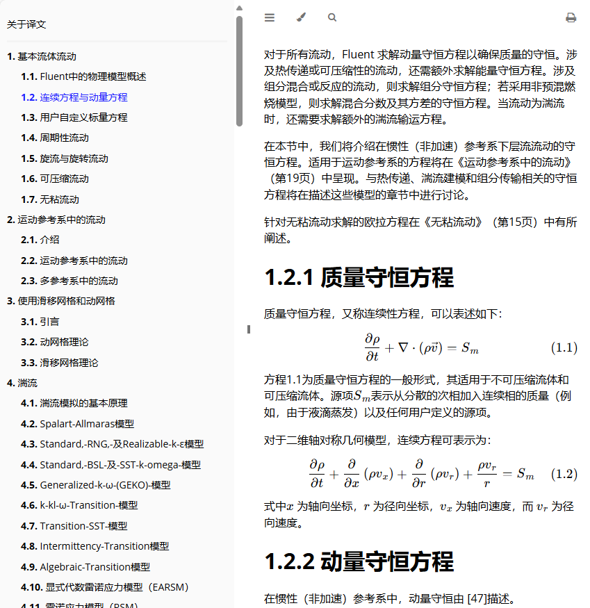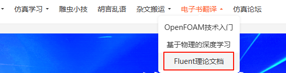 选择首页导航 电子书翻译 → Fluent理论文档即可进入