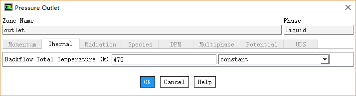 鼠标双击模型树节点Boundary Conditions > outlet > liquid,如下图所示设置出口液相温度