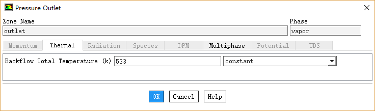 鼠标双击模型树节点Boundary Conditions > outlet > vapor,如下图所示设置出口气相温度