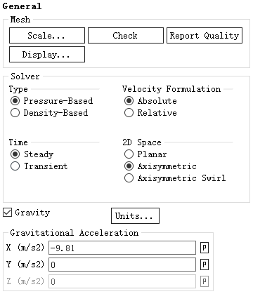 鼠标双击模型树节点General,右侧面板选择Axisymmetric,其他参数保持默认设置