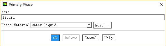 鼠标双击模型树节点Models > Multiphase > Phase > Primary Phase,弹出对话框中设置water-liquid为主相,并修改名称为liquid