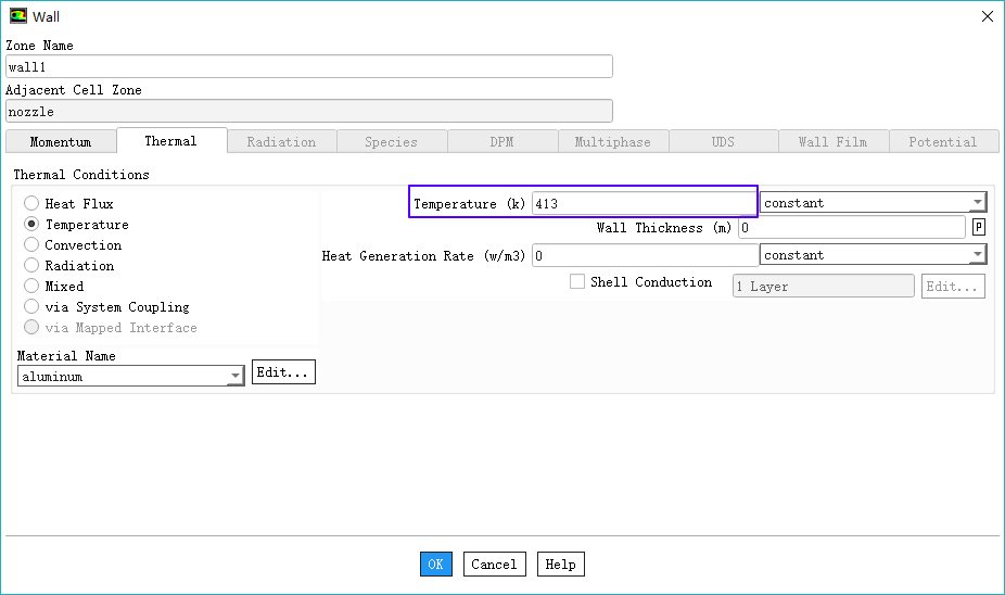 鼠标双击模型树节点Boundary Condtions > wall1 ,弹出参数设置对话框
