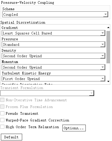 鼠标双击模型树节点Solution > Methods,右侧面板中设置Scheme为Coupled,其他参数保持默认设置
