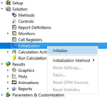 右键选择模型树节点Initialization,点击弹出菜单项Initialize完成初始化