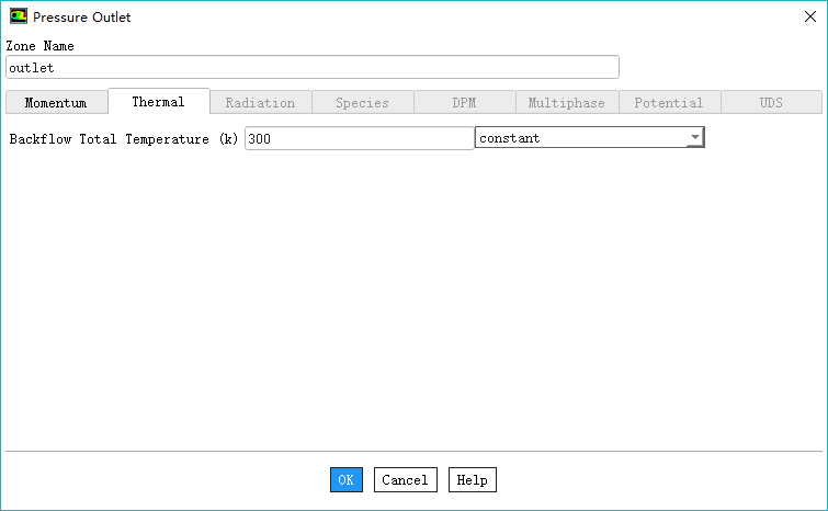 鼠标双击模型树节点Boundary Condtions > outlet,弹出参数设置对话框