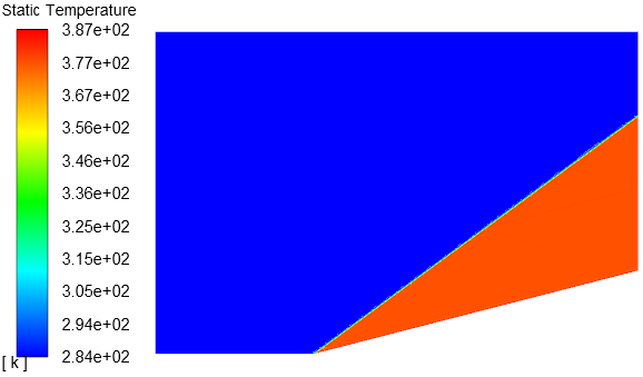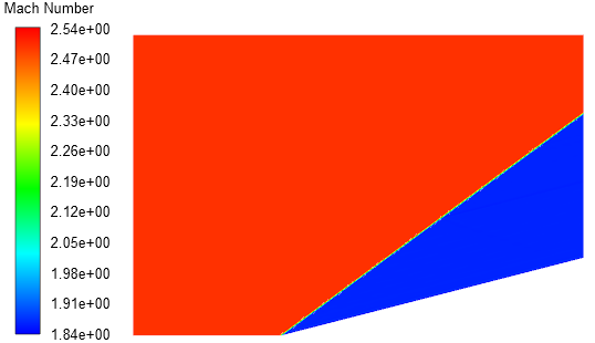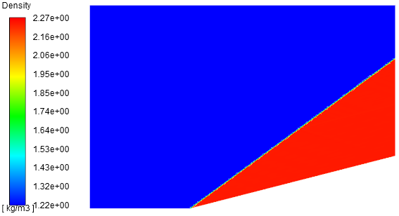 本案例计算超声速流体经过15°倾斜壁面后形成的斜激波。
