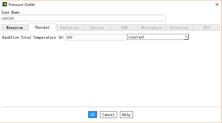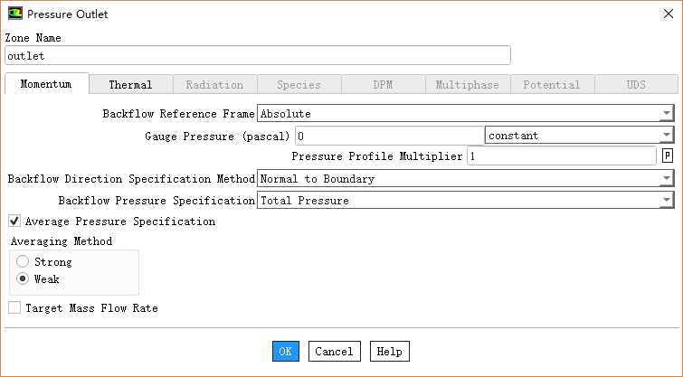 鼠标双击模型树节点Boundary Conditions > outlet弹出设置对话框