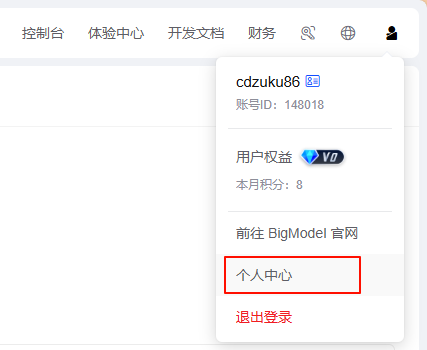 注册完毕后可以登录,然后点右上角的人头下方的 个人中心