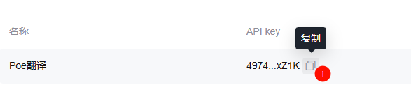 API创建完毕后,可以将API Key复制下来,后面要用