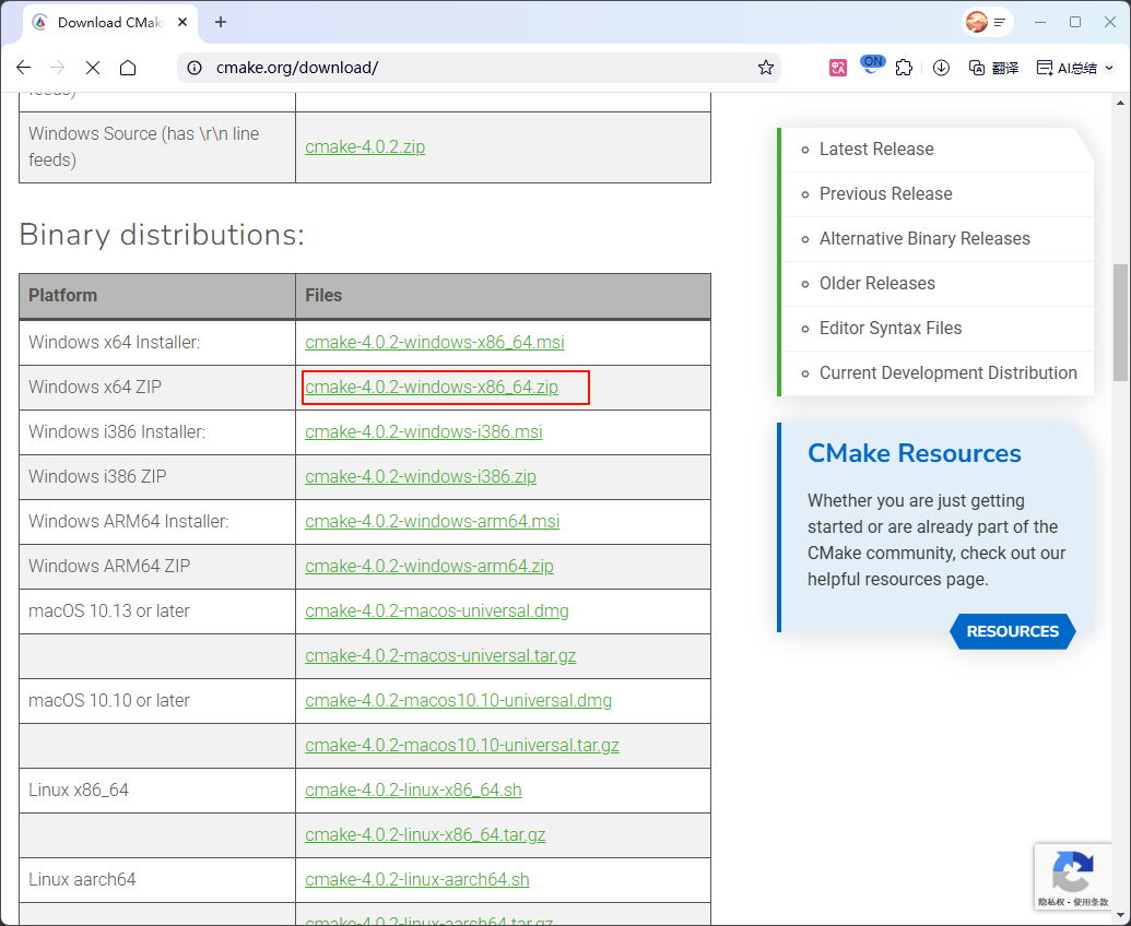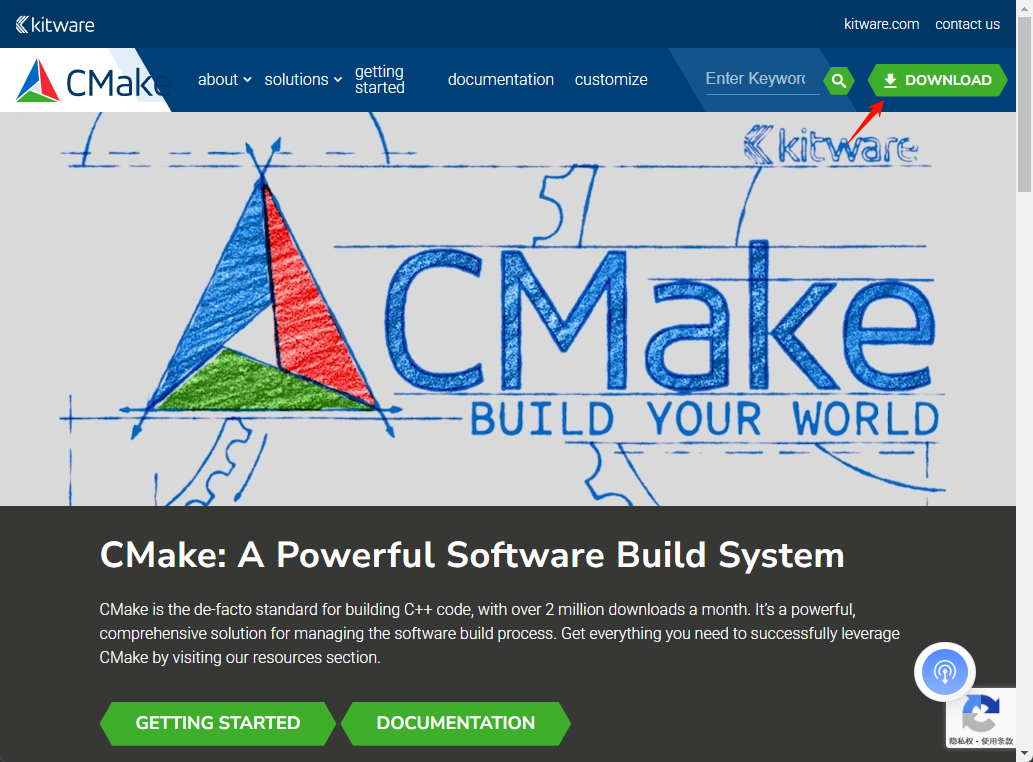 进入CMake官网( https://cmake.org/ )下载CMake。