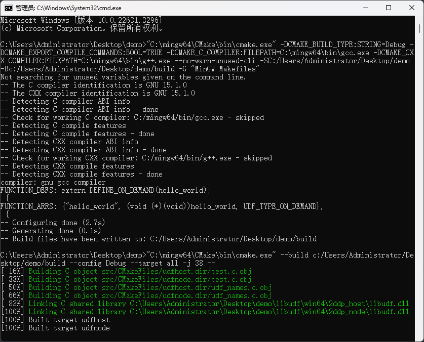 "C:mingw64CMakebincmake.exe" --build c:/Users/Administrator/Desktop/demo/build --config Debug --target all -j 38 --