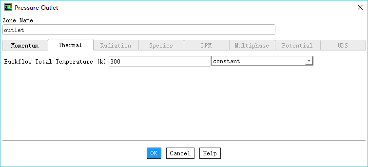 鼠标双击模型树节点Boundary Conditions > outlet弹出设置对话框