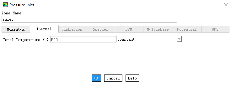 鼠标双击模型树节点Boundary Conditions > inlet弹出设置对话框