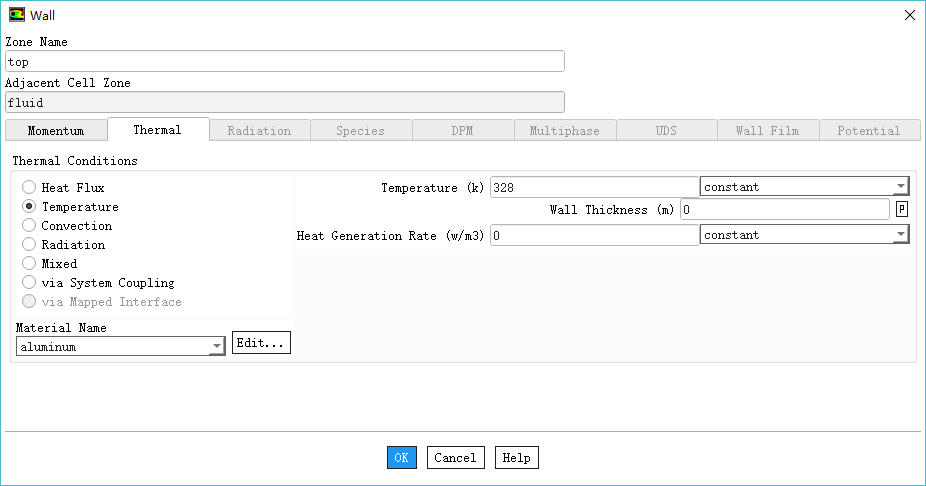 鼠标双击模型树节点Boundary Conditions > top弹出设置对话框